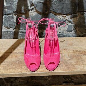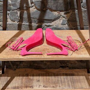 Christian Louboutin Hot Pink Suede Lace Up NVP 120 Peep Toe Pumps