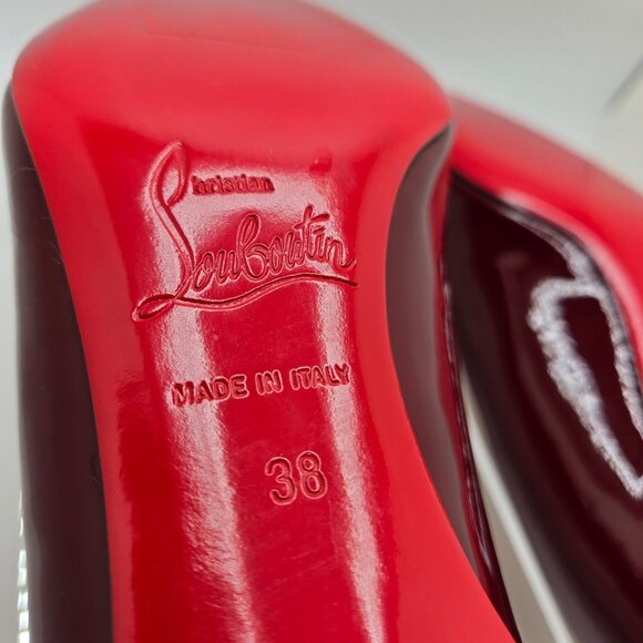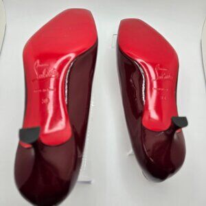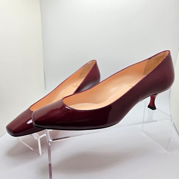 Christian Louboutin Kitten Heel Square Toe Patent Leather Red Sole Burgundy