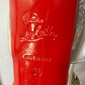 These Christian Louboutin heels are the epitome of luxury and style, making them a must-have for fashion-forward wardrobes. The glitter detailing and red soles command attention and elevate any outfit to red-carpet status. Perfect for weddings, galas, or making a bold impression.
