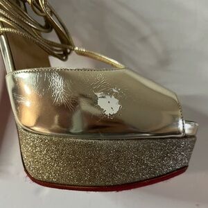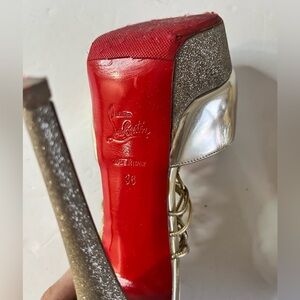 Christian Louboutin Lady Peep Gold Glitter Platform Heels Women’s EU 36
