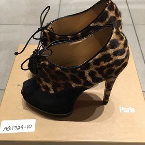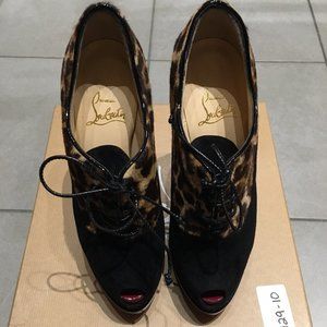 Almost brand new worn once inside for an indoor event. I usually wear size 35 or 4.5 in boots. However, Christian Louboutin generally runs small. Size 35.5. Realistically I would say this is close to a size 35. May stretch a bit once worn. I used to wear very high heels. However, I am no longer able to wear those shoes after I injured one of my ankles. Ask for $650. Retail price is about $1300 plus tax.