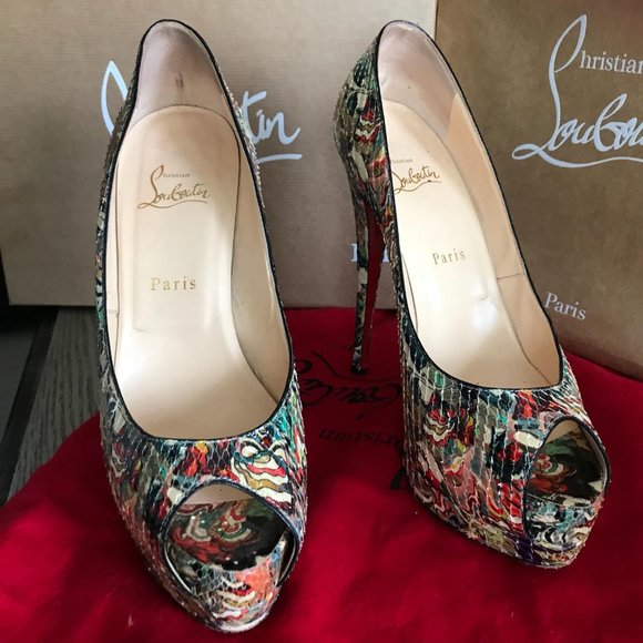 Christian Louboutin Multi-Color Palais Royal Python140 Peep-toe Pumps Size 39.5