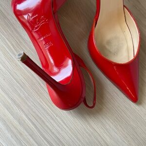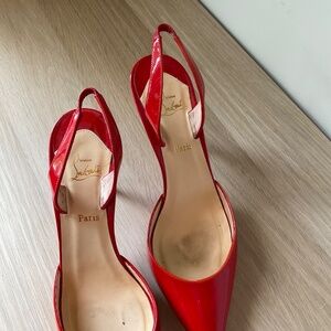 Christian Louboutin Red Leather Patent Slingback . Chic dressy elegant ,excellent condition . Size 35.5 .3.5” heel.