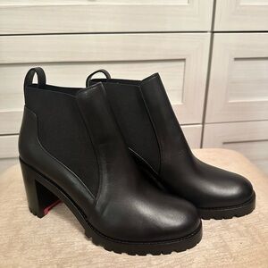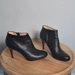 Christian Louboutin Red-Bottomed Leather Belle Ankle Boot Black Booties 38.5