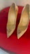 Cork and leather upper, vibrant colors of beige, pink and green with a bit of gold sparkle, stiletto heels. Perfect condition, was wearing these only once indoors. Dust bags included. I will try to find the original box, but if not will ship in an other.
