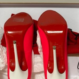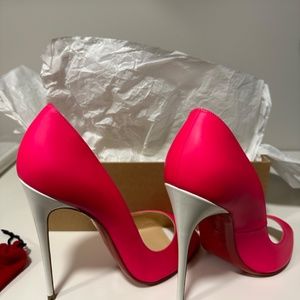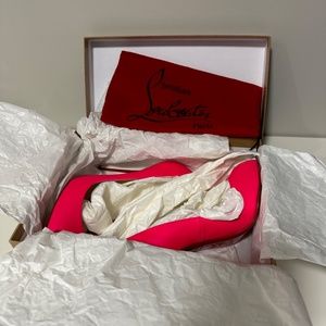 Signature red heel with minimal wear (see pictures). Includes the original box, dust bag, and extra heel rubber tips (came with the shoes when purchased).