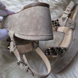 Christian Louboutin beige suede spikes wedges