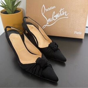 Christian Louboutin black satin Francaise slingback low heels - size 37.5 (US 7)