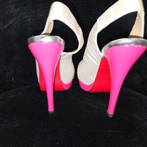 Brand new Christian Louboutin "Very Croise" 140 nappa ivory w/ pink platform heels. Size 37.