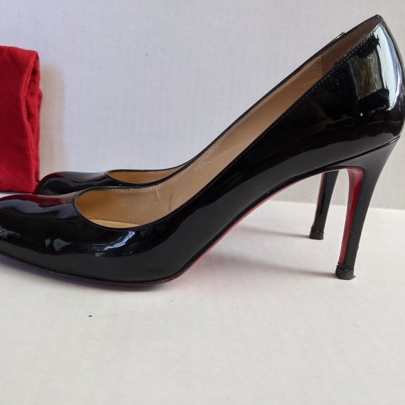 Size 7.5 Authentic red sole Louboutins, patent leather, and rounded toe. Lots of wear on the bottom toe, but I've added a screenshot from their website that outlines where you can get this repainted if you wanted. The leather and upper part of the shoe is in great condition! This sale will come with the dust bag and spare lifts/heel taps (no box, sorry!)