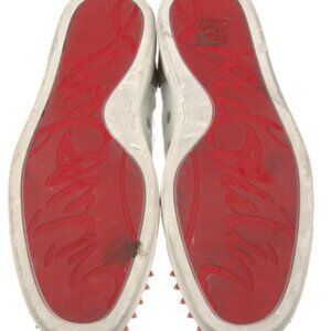 Christian Louboutin Leather Low Top Sneakers, white, printed, rubber trim, round-toes with studded accents, lace-up closure at uppers, no box and dust bag.