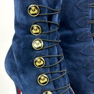 Description: Christian Louboutin "Frenchissima" blue suede boots