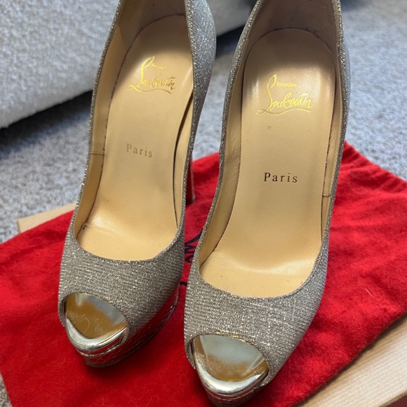 Christian Louboutins Lady Peep Glittex Size 7.5