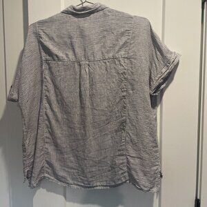 Christian Siriano Linen Shirt. 100% Linen. Size Medium. Boxy Loose fit. Excellent pre owned condition. White and black vertical and horizontal stripes.