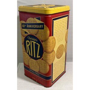 This Christie Ritz 60th Anniversary Collectible Tin commemorates six decades of excellence. The tin, marked 1935-1995, is both a nostalgic keepsake and a practical storage solution for crackers or other items. Its vibrant design and historical significance make it a valuable addition to any collection.