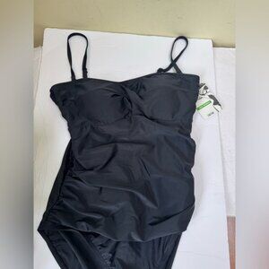 Christina NEW 1 Piece Swimsuit Waist Minimizer Ruched Padded Slim Removable Straps