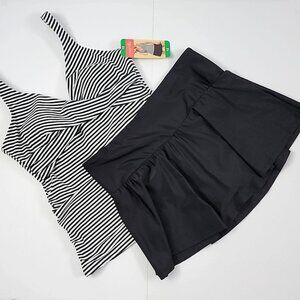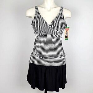 Christina Women's 2 Piece Tankini Top Swim Skirt Black White Stripes Size 12