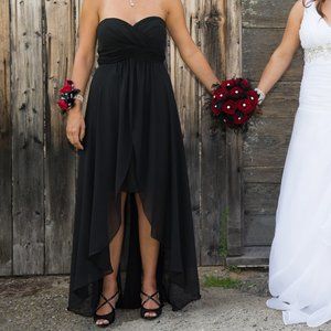 This dress was worn once for a wedding and was dry cleaned afterwards.