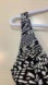 This attractive, black and white bathing suit is in excellent used condition. It has soft cups and an elastic band under the bust line and around the back.