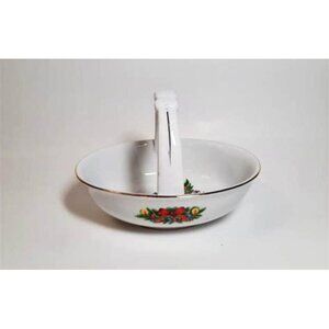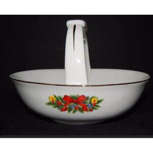 Christmas Basket Jamestown China Treasure Porcelain Handled Gold Trim