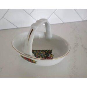 Vintage Christmas Treasure Jamestown China Porcelain Basket with gold trim.