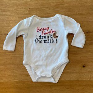 100% organic cotton holiday bodysuit with wording "Sorry Santa, I drank the milk". Excellent condition.