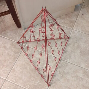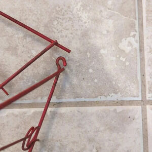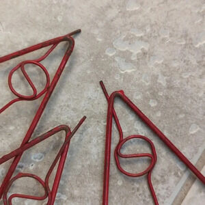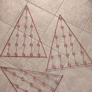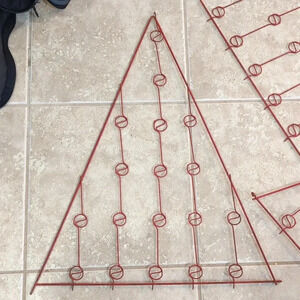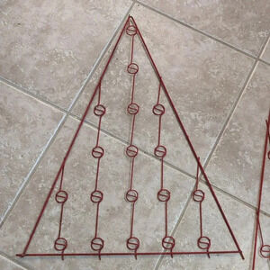 Vintage red metal 3 sided triangular start for displaying Christmas Cards. From our Mother's collection of Christmas accessories. I estimate that it is from the 60's. Some pictures online show it with an internal central post, it has never had one in my memory.