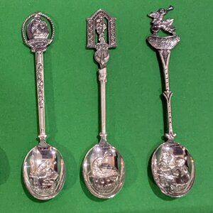 This is a selection of vintage Christmas spoons made in Holland of EPNS Silverplate. They are wonderfully decorated with embossing on the bowls and on the finials with etched images as well as showing what year they represent. They are in excellent vintage collection, with the years included listed below. Each measures approximately 4.5 inches in length.