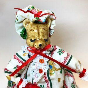 Christmas Decor Grandma Bear Nightgown Bonnet Candle Figurine