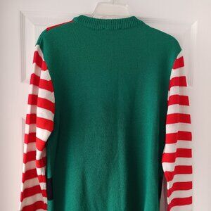 Christmas Elf Women's Pullover Sweater Bells Pom Poms Red Green Size Small