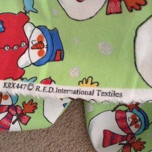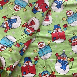 Christmas Frosty The Snowman Flannel Fabric (1 Piece) Green Material Quilting