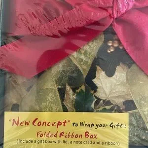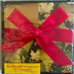 Folded Ribbon Christmas Gift Box - Gold, Green, and Red