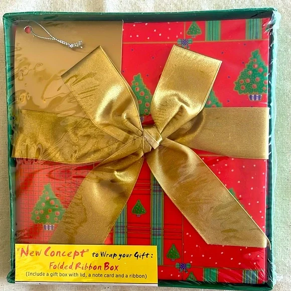 Christmas Folded Ribbon Gift Box - Green and Gold - New with Tags!