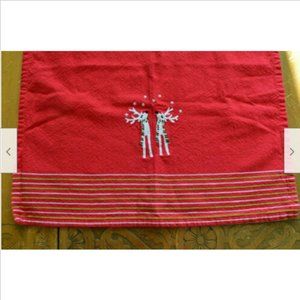 Cute holiday kitchen towel has a reindeer design embroidered at one end. Harman brand, made in India. 25" x 17". 100% cotton. Very good pre-owned condition.
