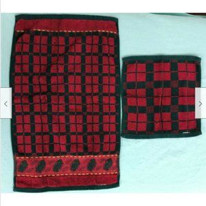 Christmas Holiday Theme Pinecone Red & Green Check Bathroom Hand Towel Set