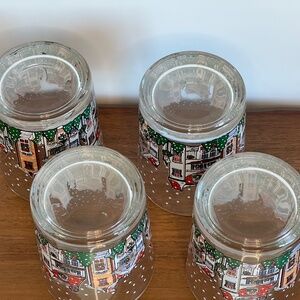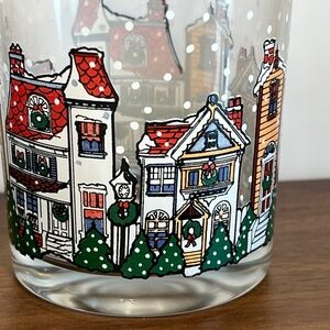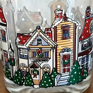 The glasses feature a delightful winter village screen print, capturing the spirit of the season with intricate detail. Each glass is in pristine condition with no scratches, chips or cracks. Zero signs of wear to the village designs. Add a festive touch to your winter celebrations today with this timeless set.