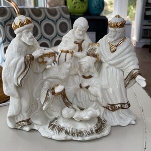 Holy family and wiseman lamp in excellent condition. Lenox style white porcelain scene lamp. No cracks or chips or crazing.