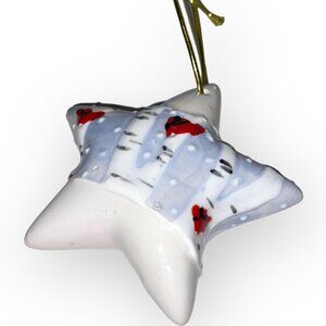 Christmas Ornament Ceramic Star Hand Painted Red Cardinal Woods Tree Snow