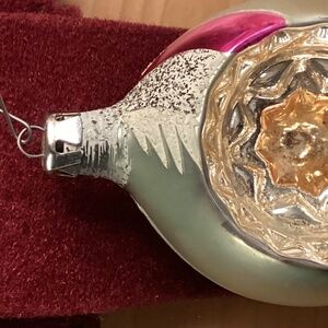 Christmas Ornament Stamped POLAND Glass Reflector Teardrop 3in PASTEL SWIRL