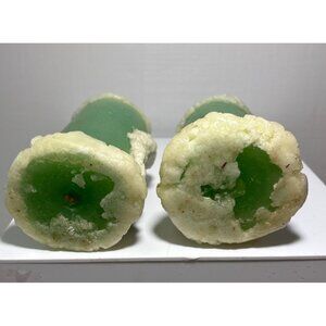 These vintage green candles feature charming Christmas angel illustrations and a unique wax texture, adding a touch of nostalgic elegance to holiday decor. Crafted with attention to detail, they serve as eye-catching centerpieces or mantel accents, exuding warmth and festive spirit. Ideal for collectors of vintage holiday decor.
