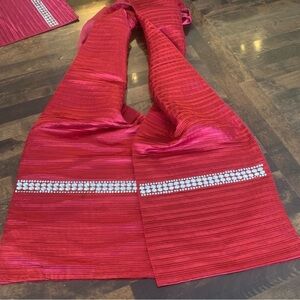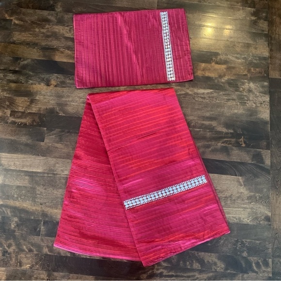 Christmas Ruby red pleated satin effect gem jewelled placemats and table runner