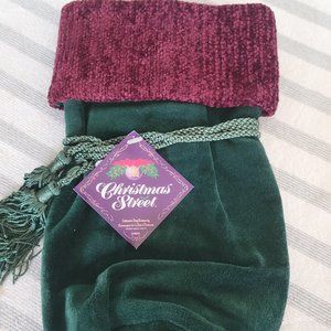 Christmas Street, NWT, 100% Cotton, Bottle Bag with Green Tassel tie. Green and Burgandy. Top of the bag is similar to a boucle and the rest is velour.