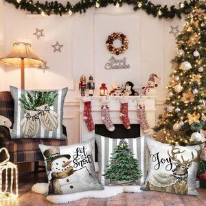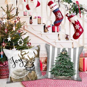 Set of 4 18 x 18 Decorative Christmas Pillowcases with clear prints pattern to help you quickly change up your Christmas decorations, perfect for Xmas Thanksgiving Halloween Winter Decor.