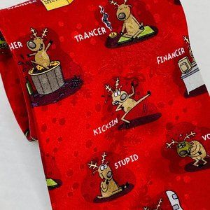 Christmas Tie Red Santa's Reindeers 58 inches long.