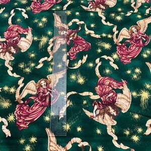 Christmas Winged Angels w/ Instruments Green Gold Fabric Original R.E.D. 3 Yd