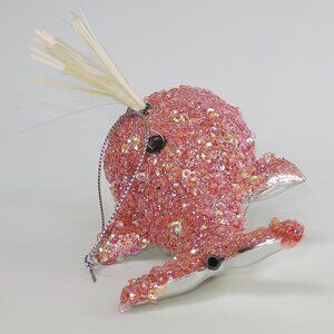 Christmas ornament 5" long spouting WHALE Silver with PINK glitter & sequins