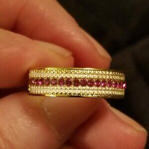 White flower ring is hallmarked 925 sterling (with gold plate over top I believe) and is size 6.5