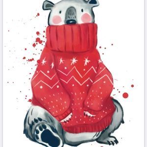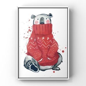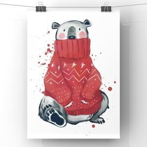 Christmas Animal Wall Art Winter Holiday Bear in scarf and winter muffs home decor art Print