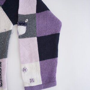 Christopher & Banks Lavender Patchwork Snowflake Tree Winter Grandma Cardigan XL