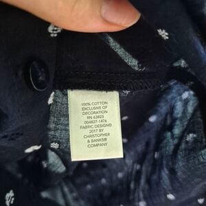 Tags: women, petite medium, Christopher & Banks, navy blouse, polka dot, embroidered, floral, cotton, 3/4 sleeve, bow detail, elegant, office